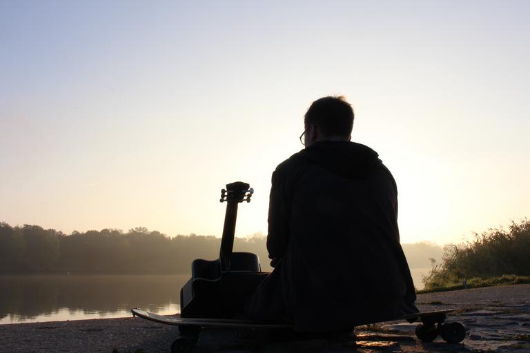 Keywords: musician sun leisure guitar water out swim lake nature beautiful back light sunrise tree landscape evening sky spring sky close