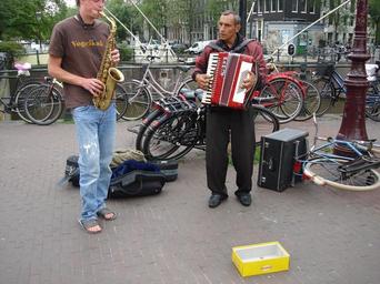 Keywords: musicians street musicians accordion saxophone performers musician street instrument performer performance entertainment play playing musical people