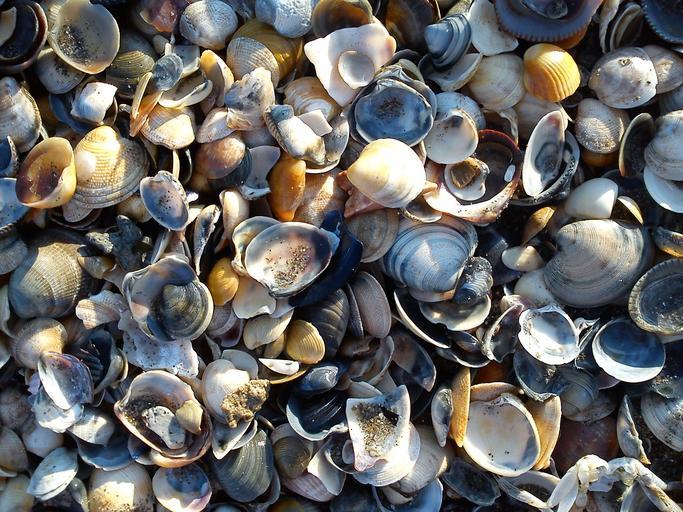 Keywords: mussels colorful many close shells mussel shells mess beach background image
