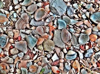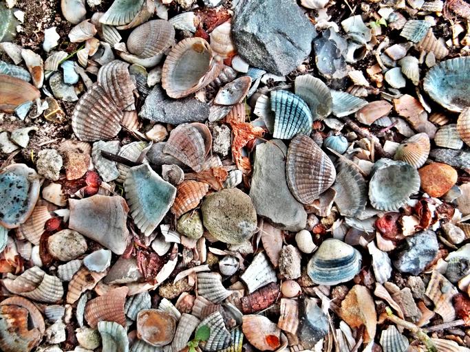 Keywords: mussels shells shellfish mussel shells beach colorful stones ground nature background image