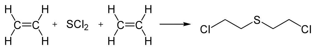 Keywords: Mustard gas synth 1.svg reaction scheme of former mustard gas synthesis Reaktionschema der früheren Lost-Synthese Own 22 8 2009 / 2008-07-20 Yikrazuul Ilgom talk Sulfur mustard