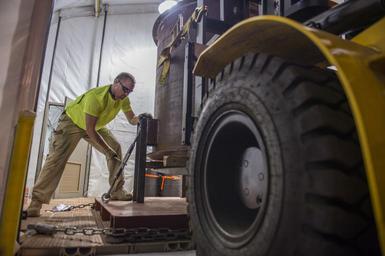 MAKE A MEME View Large Image Cape Ray 140617-N-XB010-004.jpg en Zachary Lay a chemical operator for Edgewood Chemical Biological Center aboard MV Cape Ray secures a full-size model chemical agent container for processing in the Field Deployable Hydrolysis System on the ...