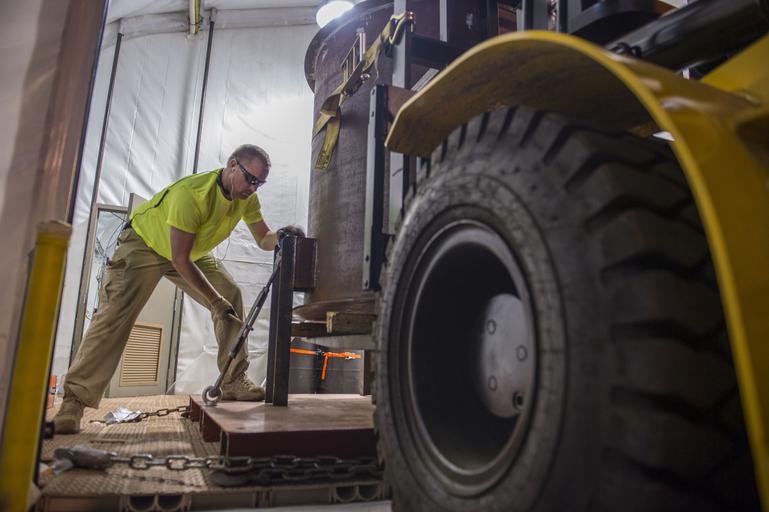 Keywords: MV Cape Ray 140617-N-XB010-004.jpg en Zachary Lay a chemical operator for Edgewood Chemical Biological Center aboard MV Cape Ray secures a full-size model chemical agent container for processing in the Field Deployable Hydrolysis System on the ship during an exercise in operating the FDHS Cape Ray is tasked with the neutralization of specific chemical materials from Syria in accordance with the Organization for the Prohibition of Chemical Weapons guidelines while operating in international waters <br>Unit Defense Media Activity 2014-06-17 ECBC https //www dvidshub net/image/1433594/mv-cape-ray 140617-N-XB010-004 2014-07-03 10 55 NAVAL STATION ROTA ES PD-USGov-Military-Navy Naval Station Rota Images from DoD uploaded by Fæ