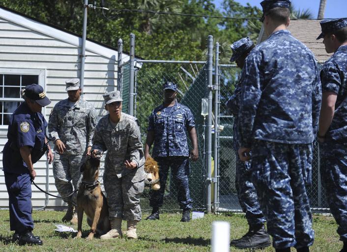 Keywords: MWD medical training 130410-N-TC587-077.jpg en Sgt Bethzabe Delgado right noncommissioned officer in charge of the Veterinary Clinic at Naval Station Mayport explains what to look for when performing CPR on a military working dog during monthly medical training at the NS Mayport Veterinarian Clinic Training between MWD handlers and the veterinarian clinic is essential in ensuring the dogs remain healthy and mission ready for deployments U S Navy photo by Mass Communication Specialist 3rd Class Damian Berg/Released 2013-04-10 Petty Officer 3rd Class Damian Berg https //www dvidshub net/image/907427 130410-N-TC587-077 2013-04-15 22 04 MAYPORT FL US PD-USGov-Military-Navy Naval Station Mayport Images from DoD uploaded by Fæ |