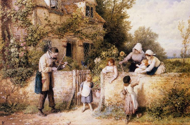 | Keywords: Myles Birket Foster - The Itinerant Fiddler.jpg en Dimensions and material of painting Watercolor 11 75 x 17 5 in scan of painting Creator Myles Birket Foster s 1860 Location Sotheby ™s PD-old-100 Category Myles Birket Foster Violinists in art Street musicians in art Images from Sotheby's |