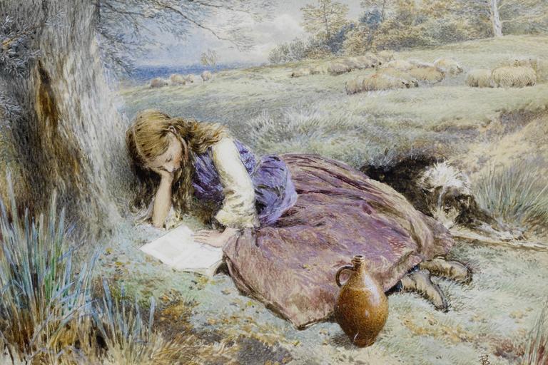| Keywords: Myles Birket Foster The shepherdess.jpg The shepherdess monogram Watercolour bodycolor Langswitch erhöht mit heightened with 15 x 22 5 cm http //www bonhams com/ Bonhams by 1899 Creator Myles Birket Foster PD-old-100 Images from Bonhams Myles Birket Foster Watercolor paintings of people Female shepherds in art Paintings of girls reading outdoors |