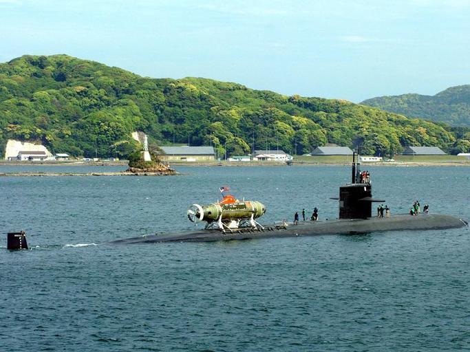 | Keywords: Mystic (DSRV-1)aboard USS La Jolla (SSN-701).jpg  US government source public domain Sasebo Japan Apr 25 2002 ”- The Los Angeles-class attack submarine USS La Jolla SSN 701 with the deep submergence rescue vehicle Mystic DSRV-1 attached gets underway to participate in the submarine rescue Exercise Pacific Reach 2002 La Jolla and Mystic will operate with surface ships and submarines from the U S Japan Australia the Republic of Korea and the Republic of Singapore during Exercise Pacific Reach Mystic was specifically designed to fill the need for an improved means of rescuing the crew of a submarine immobilized on the ocean floor It can operate independently of surface conditions or under ice for rapid response to an accident anywhere in the world U S Navy photo by Journalist 3rd Class Wes Eplen 020425-N-0401E-002 Apr 25 2002 PD-USGov USS La Jolla SSN-701 DSRV-1 Mystic submarine 1970 Pacific Reach 2002 April 2002 photographs |