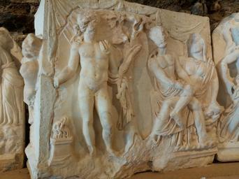 Keywords: Myth of Adonis part 2.jpg tr Adonis Efsanesi'ni betimleyen ikili kabartmanın ikincisi Kayalık üzerinde yaralı Adonis'i kucağında tutan Afrodit görülüyor 2015-05-18 17 43 06 own Cobija other versions 37 923537083333 29 116728388889 heading 245 cc-zero Uploaded with UploadWizard Hierapolis Museum Aphrodite Adonis |