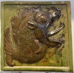 Keywords: Mythical fish Makara tomb tile, China, 550-600 AD, glazed earthenware - Royal Ontario Museum - DSC04067.JPG en Exhibit in the Royal Ontario Museum Toronto Ontario Canada This work is old enough so that it is in the public domain Photography was permitted in the museum without restriction 2013-10-08 14 38 57 own Daderot cc-zero Chinese tomb tiles in the Royal Ontario Museum Uploaded with UploadWizard Makara in China |