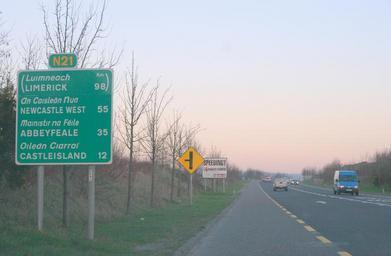 Keywords: N21nearTralee4600.jpg The N21 near Tralee County Kerry Ireland own 1846700 2008-02-13 Sarah777 Roads in County Kerry Road signs in County Kerry February 2008 in Ireland National primary roads in Ireland Informational road signs in Ireland Crossroad warning signs in Ireland Pictures by Sarah777