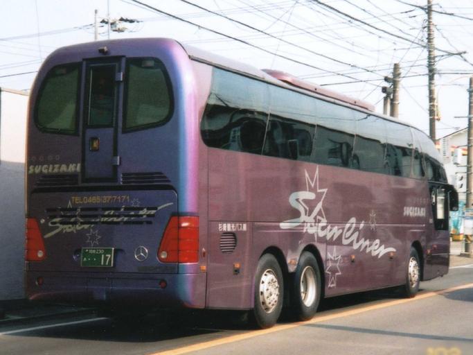 | Keywords: N516 Sugizaki Kanko StarLiner rear.jpg Neoplan Starliner L Neoplan buses in Japan Sugizaki Kankō Bus Buses in Japan built in 2002 Buses in Japan photographed in 2003 Coaches in Japan Full-size buses in Japan Number 17 on buses Purple buses Tri-axle buses in Japan Buses in Odawara Kanagawa |