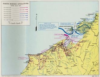 | Keywords: N borneo ops 1945.jpg en Map of Allied operations in North Borneo during June and July 1945 showing the main landings and the movements of the Australian Army infantry battalions involved in the campaign The map was originally published in the book Engineers of the Southwest Pacific 1941-1945 Vol 1 Engineers in Theater Operations Reports of Operations of the United States Army Forces in the Far East Southwest Pacific Area Army Forces Pacific authored by the Office of the Chief Engineer General Headquarters Army Forces Pacific and published by the U S Govt Print Office in 1947 1947 http //www lib utexas edu/maps/historical/engineers_v1_1947 html Office of the Chief Engineer General Headquarters Army Forces Pacific PD-USGov-Military-Army PD-AustraliaGov PD-1996 Australia other versions Military history of Australia during World War II Maps of World War II in the Pacific Maps of naval battles Borneo |
