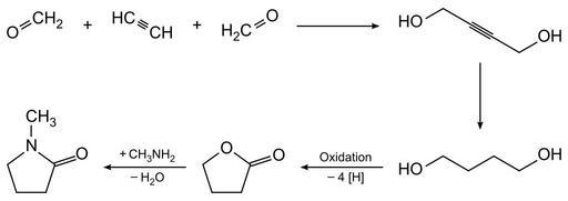 | Keywords: N-methy-2-pyrrolidone-synthesis.svg ValidSVG Synthese von N-Methyl-2-pyrrolidon NMP Synthesis of N-methyl-2-pyrrolidone NMP Own 2010-01-31 Sponk <span class signature-talk >talk</span> PD-chem N-Methyl-Pyrrolidon png Wikipedia de File Chemical syntheses |
