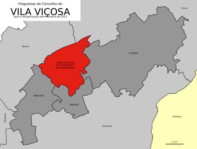| Keywords: N. S. Conceição e S. Bartolomeu (Vila Viçosa) localização.svg pt Localização da freguesia de Nossa Senhora da Conceição e São Bartolomeu no concelho de Vila Viçosa en Location of the civil parish of Nossa Senhora da Conceição e São Bartolomeu within the municipality of Vila Viçosa Portugal 2013-07-30 02 25 16 File Vila Viçosa freguesias 2013 svg Gazilion cc-zero Uploaded with UploadWizard Vila Viçosa | ||||