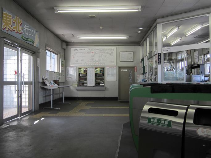 Keywords: Naebo Sta ticket gate.jpg ja 苗穂駅駅舎内の様子 駅舎が小さいため出入口すぐに自動改 機がある みどりの窓口も混雑時は時間に注意が必要 2012-04-12 own Ninosan cc-zero Uploaded with UploadWizard Naebo Station JR Ticket Offices Sorted waste containers in Japan