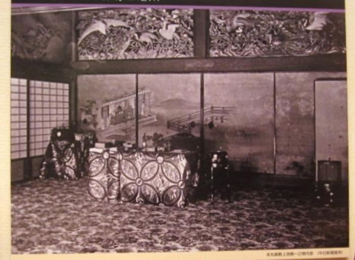 | Keywords: Nagoya Imperial Villa.jpg Interior of Honmaru Palace of Nagoya Castle when it was used as an imperial detached palace or villa The items such as the table and brocade chairs brazier and other items still exist and are kept in storage http //blogimg goo ne jp/user_image/3d/f5/c7e0e514d894bc176afb43da6d5b8901 jpg before 1931 author PD-Japan Interior of the Honmaru Palace Nagoya Castle Historical photographs of Nagoya | ||||