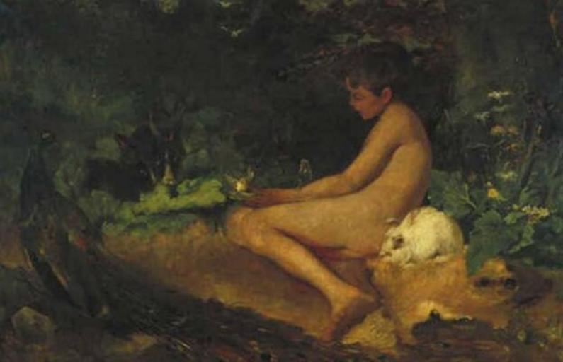 View Original:Naked_Figure_(Boy)_in_a_Forest_by_Jan_de_Jong.jpg (500x322)