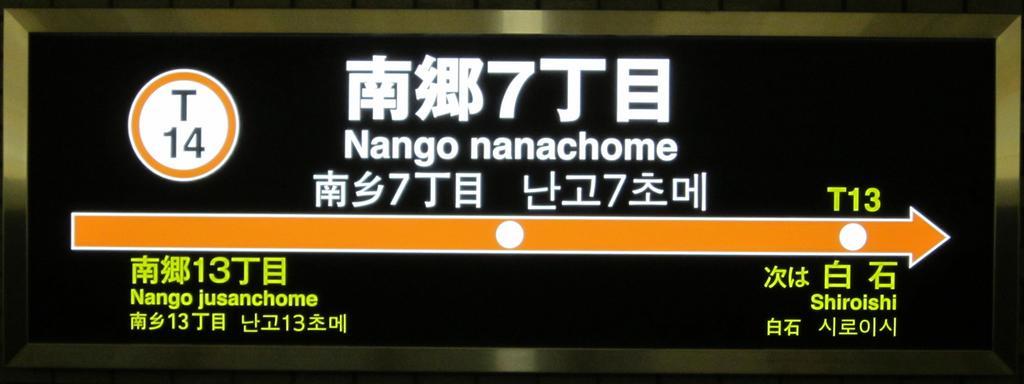Keywords: Nango 7 sta signs.jpg ja 幌市営 下鉄 西線南郷7丁目駅駅名標(大 ・宮の沢方 ) 2012-05-21 own Ninosan cc-zero Uploaded with UploadWizard Train station signs in Hokkaido Nangō-Nana-Chōme Station