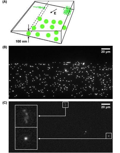 | Keywords: Nanofluidics; 3-D (5887831448).jpg A Schematic of the NIST-Cornell nanofluidic device with complex 3-D surfaces Each step of the staircase seen on the side marks a different depth within the chamber The letter E shows the direction of the electric field used to move the nanoparticles through the device The green balls are spheres with diameters of 100 nanometers whose size restricts them from moving into the shallower regions of the chamber The coil in the deep end of the chamber upper right corner is a single DNA strand that elongates upper left corner in the shallow end B Photomicrograph showing fluorescently tagged spherical nanoparticles stopped at the 100-nanometer level of the chamber the depth that corresponds to their diameter C Photomicrograph of a single DNA strand that is coiled in the deep end of chamber box at far right and elongated in the shallow end box at far left Larger boxes are closeups showing the fluorescently tagged strands Credit NIST Disclaimer Any mention of commercial products within NIST web pages is for information only; it does not imply recommendation or endorsement by NIST Use of NIST Information These World Wide Web pages are provided as a public service by the National Institute of Standards and Technology NIST With the exception of material marked as copyrighted information presented on these pages is considered public information and may be distributed or copied Use of appropriate byline/photo/image credits is requested https //www flickr com/photos/usnistgov/5887831448/ Nanofluidics; 3-D 2009-04-03 12 17 https //www flickr com/people/63059536 N06 National Institute of Standards and Technology PD-USGov National Institute of Standards and Technology https //flickr com/photos/63059536 N06/5887831448 2016-09-07 02 32 48 United States Government Work Uncategorized 2016 November 30 |
