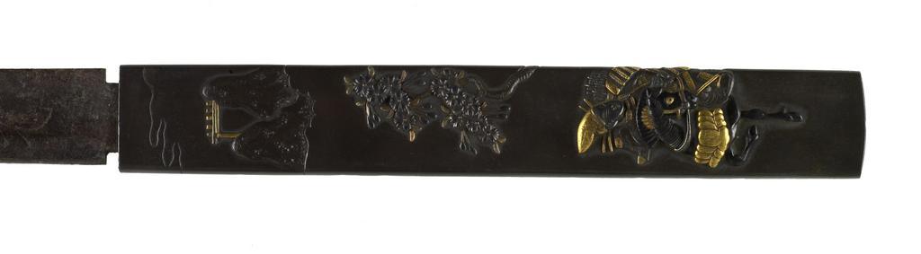 | Keywords: Naotaka - Kozuka with Mounted Samurai under Cherry Blossoms - Walters 5112534 - Detail A.jpg A samurai rides a horse along the bottom of the kozuka In the middle ground is a cherry tree in bloom and at the back is a structure in the mountains This may be Sakurai near Osaka where the 14th-century warrior Kusunoki Masashige said goodbye to his son Masatsura before Masashige's death at the battle of Minatogawa This is part of a mounted set century 18 Edo shakudo gold cm 21 4 accession number 51 1253 4 39443 Henry Walters Baltimore date and mode of acquisition unknown Walters Art Museum Henry Walters Acquired by Henry Walters Signature Kôshûsai Naotaka kao place of origin Japan Walters Art Museum license Kozuka in the Walters Art Museum Naotaka Media contributed by the Walters Art Museum needs category review |