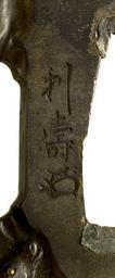 Keywords: Nara Toshinaga I - Tsuba with Enshi (Ch Yen Tzu), One of the Twenty Four Paragons of Filial Piety - Walters 51305 - Mark A.jpg This tsuba depicts Enshi Ch Yen Tzu one of the twenty four paragons of filial piety from the Chinese Zhou Chou Dynasty 1122-255 BC Enshi's parents had a eye ailment that could only be cured by deer's milk His family was too poor to buy the expensive milk so Enshi disguised himself like a deer in order to get milk directly from does in the herd near his home The tsuba depicts two hunters on the right who almost kill Enshi because they think he really is a deer Enshi is on the left wearing a deer skin between 1667 1736 Edo shibuichi with gold and copper details lead cm 7 16 6 74 0 43 accession number 51 305 34261 Henry Walters Baltimore date and mode of acquistion unknown Walters Art Museum Henry Walters Acquired by Henry Walters Signature Toshinaga kao place of origin Edo present-day Tokyo Japan Walters Art Museum license Tosogu Japanese sword fittings in the Walters Art Museum Nara Toshinaga I Media contributed by the Walters Art Museum needs category review |