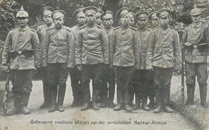 | Keywords: Narew-Front.jpg Gefangene Ulanen der Narew-Armee alte Postkarte 1914 Sendker PD PD-old World War I postcards of German Empire Postcards of men World War I cavalry Russian POW's of World War I Pickelhaube of World War I Military uniforms of World War I Eastern Front theatre of World War I in 1914 1st Division German Empire East Prussia during World War I |