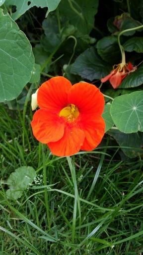 Keywords: nasturtium flower blossom bloom close orange plant beautiful spring green leaves