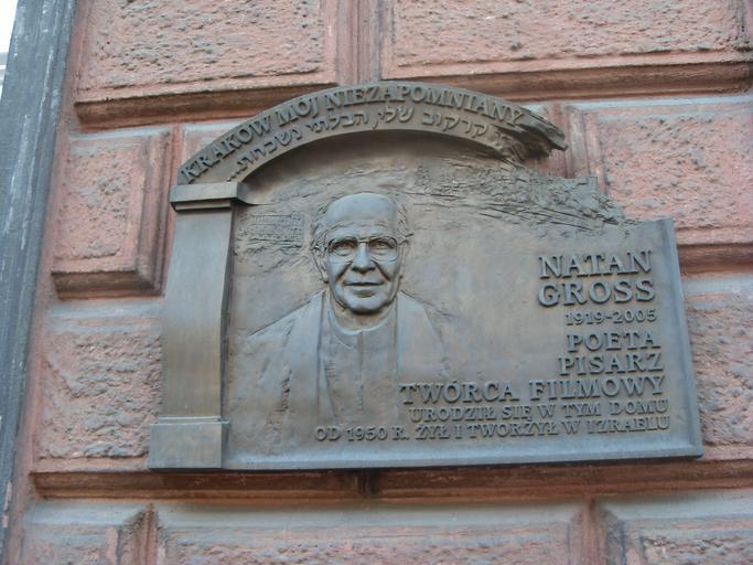 Keywords: Natan Gross.JPG pl Tablica pamiątkowa ku czci Natana Grossa przy ul Sarego w Krakowie own Miezian 2010 Here-was-born plaques in Kraków Jewish culture Poets from Poland Writers from Poland