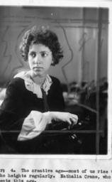 | Keywords: smithsonian institution smithsonianinstitution womensday nathalia nathalia clara ruth crane nathaliaclararuthcrane child prodigy childprodigy author poet poetry science service records scienceservicerecords society for science & the public societyforsciencethepublic authors poets professors san diego state university sandiegostateuniversity woman portrait seated glass outline openlibrary:author=ol1909962a foaf:depicts=http://nla.gov.au/nla.party-467120 foaf:depicts=httpnlagovaunlaparty467120 xmlns:foaf=http://xmlns.com/foaf/0.1/ xmlns:foaf=httpxmlnscomfoaf01 smithsonian institution archives smithsonianinstitutionarchives women's history month womenshistorymonth women in science womeninscience 2009 literature academia 20th century - mid 20thcenturymid blackandwhite people monochrome black and white Description: Famous as a child prodigy, Nathalia Clara Ruth Crane (1913-1998) published her first book at age ten and later became a professor of literature. This photograph was used to illustrate a news story about "The four ages of behavior," declaring that Crane, "who writes poetry and gets it published" represents "the creative age--most of us rise to it once in a while, but few live on the heights regularly." Creator/Photographer: Unidentified photographer Medium: Black and white photographic print Persistent URL: photography.si.edu/SearchImage.aspx?id=5778 Repository: Smithsonian Institution Archives Collection: Accession 90-105: Science Service Records, 1920s – 1970s - Science Service, now the Society for Science & the Public, was a news organization founded in 1921 to promote the dissemination of scientific and technical information. Although initially intended as a news service, Science Service produced an extensive array of news features, radio programs, motion pictures, phonograph records, and demonstration kits and it also engaged in various educational, translation, and research activities. Accession number: SIA2008-0687 Description: Famous as a child prodigy, Nathalia Clara Ruth Crane (1913-1998) published her first book at age ten and later became a professor of literature. This photograph was used to illustrate a news story about "The four ages of behavior," declaring that Crane, "who writes poetry and gets it published" represents "the creative age--most of us rise to it once in a while, but few live on the heights regularly." Creator/Photographer: Unidentified photographer Medium: Black and white photographic print Persistent URL: photography.si.edu/SearchImage.aspx?id=5778 Repository: Smithsonian Institution Archives Collection: Accession 90-105: Science Service Records, 1920s – 1970s - Science Service, now the Society for Science & the Public, was a news organization founded in 1921 to promote the dissemination of scientific and technical information. Although initially intended as a news service, Science Service produced an extensive array of news features, radio programs, motion pictures, phonograph records, and demonstration kits and it also engaged in various educational, translation, and research activities. Accession number: SIA2008-0687 |