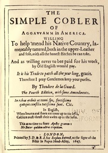 View Original:Nathaniel Ward, The Simple Cobler of Aggawam in America (4th ed, 1647, title page).jpg (554x784)