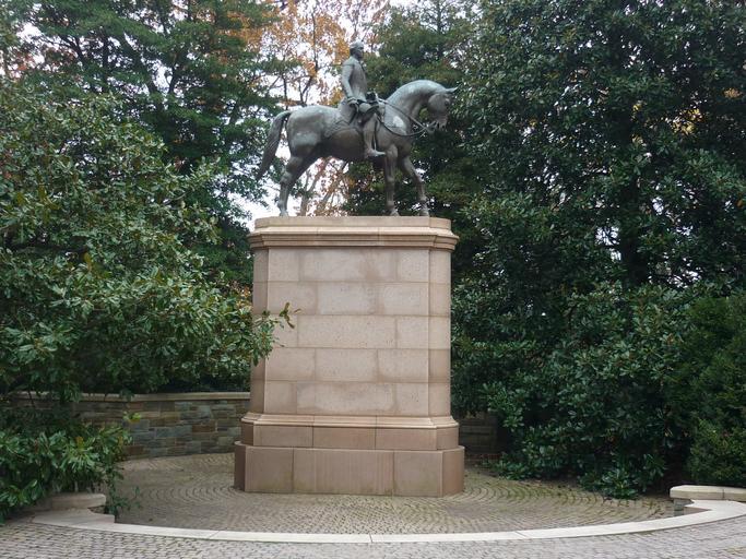 | Keywords: National Cathedral George Washington equestrian statue.JPG Herbert Chevalier Haseltine 1877 “1962 Cast in bronze and mounted on a granite pedestal the setting is paved with Salisbury granite durax blocks The equine figure has agates for eyes Donated by James Sheldon benefactor of the Cathedral Close Dedicated on February 22 1959 Considered as an outstanding example of equestrian statues in the world 2013-11-21 12 34 14 own Discol Uploaded with UploadWizard National Cathedral grounds Bronze statues in the United States Public art in Washington D C George Washington on Horseback by Herbert Haseltine Washington D C |