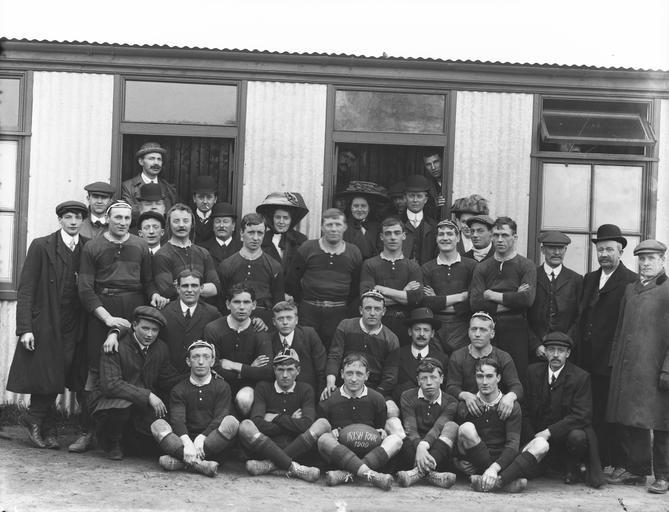 Keywords: public domain blackandwhite monochrome aberavon rugby team aberavonrugbyteam aberavon rugby team rugbyteam caps shorts jerseys irish tour 1909 irishtour1909 bowlers cigarette smoking hats veils corrugated iron corrugatediron sports rugby ireland munster tuesday 13th april 1909 1900s a.h. poole ahpoole arthur henri poole arthurhenripoole glass negative glassnegative rugby players rugbyplayers waterford national library of ireland nationallibraryofireland poole photographic collection poolephotographiccollection blackandwhite monochrome black and white Public Domain: National Library of Ireland on The Commons Public Domain: National Library of Ireland on The Commons This, we believe, is a Welsh rugby team from Aberavon on their Irish Tour in 1909. They had played a match at the Mardyke in Cork the day before this photo was taken, and there's a very scathing report on the play in the Freeman's Journal: "The match between Aberavon (Wales) and Cork County was played yesterday on the Mardyke grounds. The game right through was very rough, and presented no brilliant features whatever. Result: Aberavon - 1 try; Cork - Nil." Not sure where this photo was taken, but most probably at some sports ground in Waterford. As usual, any and all suggestions will be entertained... Date: Tuesday, 13 April 1909 NLI Ref.: P_WP_1896a This, we believe, is a Welsh rugby team from Aberavon on their Irish Tour in 1909. They had played a match at the Mardyke in Cork the day before this photo was taken, and there's a very scathing report on the play in the Freeman's Journal: "The match between Aberavon (Wales) and Cork County was played yesterday on the Mardyke grounds. The game right through was very rough, and presented no brilliant features whatever. Result: Aberavon - 1 try; Cork - Nil." Not sure where this photo was taken, but most probably at some sports ground in Waterford. As usual, any and all suggestions will be entertained... Date: Tuesday, 13 April 1909 NLI Ref.: P_WP_1896a |