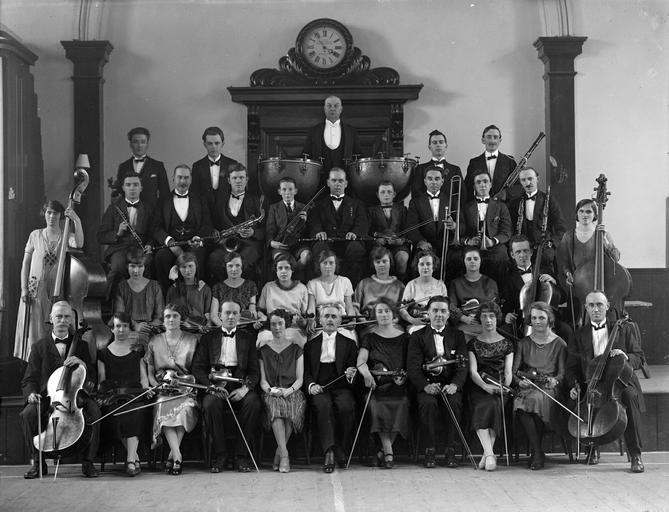 | Keywords: public domain blackandwhite monochrome team sport group performance sport orchestra music viola double bass doublebass violins drums clarinets clock 3.55 355 thursday 8th april 1926 1920s twenties a.h. poole ahpoole arthur henri poole arthurhenripoole glass negative glassnegative oboe musicians saxophone national library of ireland nationallibraryofireland poole photographic collection poolephotographiccollection blackandwhite monochrome group performance sport team sport black and white Public Domain: National Library of Ireland on The Commons Public Domain: National Library of Ireland on The Commons A very classy orchestral group, including two very young violinists, pictured somewhere in Waterford. Any Waterford buffs recognise the pillars or clock? Date: Thursday, 8 April 1926 NLI Ref.: P_WP_3356 A very classy orchestral group, including two very young violinists, pictured somewhere in Waterford. Any Waterford buffs recognise the pillars or clock? Date: Thursday, 8 April 1926 NLI Ref.: P_WP_3356 |