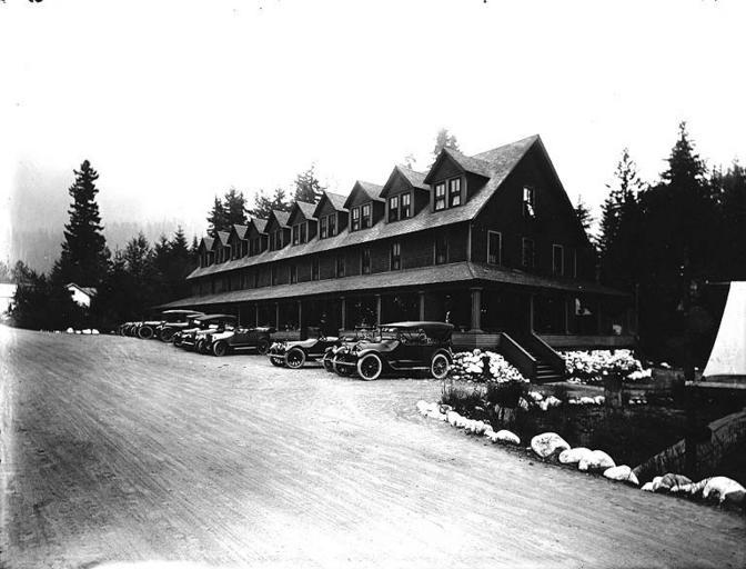 Keywords: National Park Inn at Longmire, Mount Rainier National Park, Washington, ca 1917 (BAR 62).jpeg Photograph Creator Albert Henry Barnes Shows automobiles parked in front of the Inn On sleeve of negative National Park Inn Autos Subjects LCTGM Hotels--Washington State --Mount Rainier National Park; Automobiles--Washington State --Mount Rainier National Park; Mountains--Washington State --Mount Rainier National Park Subjects LCSH National Park Inn Mount Rainier National Park Wash ; Mount Rainier National Park Wash depicted place Longmire Washington ca 1917 Silver gelatin b/w Institution University of Washington UWASH-AHBarnes-source accession number 62 PD-old-auto-1923 1920 Information field Order Number BAR297 Images from the Albert Henry Barnes Collection to check 1910s automobiles Black and white photographs National Park Inn Longmire Washington