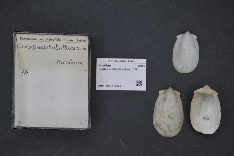 | Keywords: Naturalis Biodiversity Center - RMNH.MOL.319084 - Limatula bullata (Von Born, 1778) - Limidae - Mollusc shell.jpeg artwork Dimensions artwork Document type Limidae Limatula Individual count Infraspecific epithet Infraspecific rank Institution Naturalis Kind of unit artwork Kind of unit specimen shell Life stage Medium artwork Nomenclatural code Source institute Rijksmuseum van Natuurlijke Historie Leiden Scale the width of the text on the species/QR-code label is 38 mm Occurrence ID page Other fields Other versions artwork Permission license Naturalis donation CC-0 Mollusca Publication location Scientific name Limatula bullata Von Born 1778 Scientific name authorship Von Born 1778 Source url http //bioportal naturalis nl Specific epithet bullata State or province Subject keywords artwork Subject keywords publication Title artwork Title publication Type status Uploaded with GWToolset Naturalis_Biodiversity_Center_-_RMNH MOL 319084_-_Limatula_bullata_ Von_Born _1778 _-_Limidae_-_Mollusc_shell http //medialib naturalis nl/file/id/RMNH MOL 319084/format/large Media donated by Naturalis Biodiversity Center Molluscs at Naturalis from the Rijksmuseum van Natuurlijke Historie Limatula bullata Limatula |