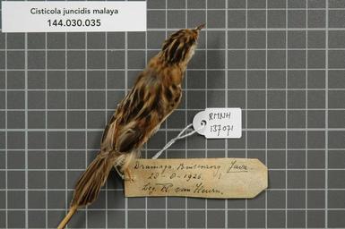 Keywords: Naturalis Biodiversity Center - RMNH.AVES.137071 1 - Cisticola juncidis malaya Lynes, 1930 - Sylviidae - bird skin specimen.jpeg artwork Dimensions artwork Document type Sylviidae Cisticola Individual count 1 Infraspecific epithet malaya Infraspecific rank Institution Naturalis Kind of unit artwork Kind of unit specimen skin Life stage Indonesia Java Buitenzorg Dramaga Medium artwork Nomenclatural code Sex remark on label Occurrence ID page Other fields Other versions artwork Permission license Naturalis donation CC-0 Publication location Scientific name Cisticola juncidis malaya Lynes 1930 Scientific name authorship Lynes 1930 Source url http //bioportal naturalis nl Specific epithet juncidis State or province Subject keywords artwork Subject keywords publication Title artwork Title publication Type status Uploaded with GWToolset Naturalis_Biodiversity_Center_-_RMNH AVES 137071_1_-_Cisticola_juncidis_malaya_Lynes _1930_-_Sylviidae_-_bird_skin_specimen http //medialib naturalis nl/file/id/RMNH AVES 137071_1/format/large Media donated by Naturalis Biodiversity Center Songbird specimens at Naturalis Biodiversity Center Cisticola juncidis Cisticola |