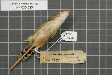 Keywords: Naturalis Biodiversity Center - RMNH.AVES.137071 2 - Cisticola juncidis malaya Lynes, 1930 - Sylviidae - bird skin specimen.jpeg artwork Dimensions artwork Document type Sylviidae Cisticola Individual count 1 Infraspecific epithet malaya Infraspecific rank Institution Naturalis Kind of unit artwork Kind of unit specimen skin Life stage Indonesia Java Buitenzorg Dramaga Medium artwork Nomenclatural code Sex remark on label Occurrence ID page Other fields Other versions artwork Permission license Naturalis donation CC-0 Publication location Scientific name Cisticola juncidis malaya Lynes 1930 Scientific name authorship Lynes 1930 Source url http //bioportal naturalis nl Specific epithet juncidis State or province Subject keywords artwork Subject keywords publication Title artwork Title publication Type status Uploaded with GWToolset Naturalis_Biodiversity_Center_-_RMNH AVES 137071_2_-_Cisticola_juncidis_malaya_Lynes _1930_-_Sylviidae_-_bird_skin_specimen http //medialib naturalis nl/file/id/RMNH AVES 137071_2/format/large Media donated by Naturalis Biodiversity Center Songbird specimens at Naturalis Biodiversity Center Cisticola juncidis Cisticola |