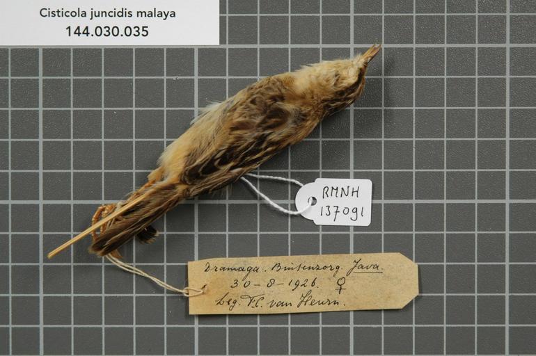 Keywords: Naturalis Biodiversity Center - RMNH.AVES.137091 1 - Cisticola juncidis malaya Lynes, 1930 - Sylviidae - bird skin specimen.jpeg artwork Dimensions artwork Document type Sylviidae Cisticola Individual count 1 Infraspecific epithet malaya Infraspecific rank Institution Naturalis Kind of unit artwork Kind of unit specimen skin Life stage Indonesia Java Buitenzorg Dramaga Medium artwork Nomenclatural code Occurrence ID page Other fields Other versions artwork Permission license Naturalis donation CC-0 Publication location Scientific name Cisticola juncidis malaya Lynes 1930 Scientific name authorship Lynes 1930 female Source url http //bioportal naturalis nl Specific epithet juncidis State or province Subject keywords artwork Subject keywords publication Title artwork Title publication Type status Uploaded with GWToolset Naturalis_Biodiversity_Center_-_RMNH AVES 137091_1_-_Cisticola_juncidis_malaya_Lynes _1930_-_Sylviidae_-_bird_skin_specimen http //medialib naturalis nl/file/id/RMNH AVES 137091_1/format/large Media donated by Naturalis Biodiversity Center Songbird specimens at Naturalis Biodiversity Center Cisticola juncidis Cisticola |