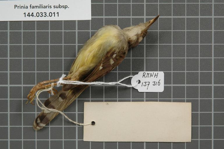Keywords: Naturalis Biodiversity Center - RMNH.AVES.137316 2 - Prinia familiaris subsp. - Sylviidae - bird skin specimen.jpeg artwork Dimensions artwork Document type Sylviidae Prinia Individual count 1 Infraspecific epithet subsp Infraspecific rank Institution Naturalis Kind of unit artwork Kind of unit specimen skin Life stage Medium artwork Nomenclatural code Occurrence ID page Other fields Other versions artwork Permission license Naturalis donation CC-0 Publication location Scientific name Prinia familiaris subsp Scientific name authorship Source url http //bioportal naturalis nl Specific epithet familiaris State or province Subject keywords artwork Subject keywords publication Title artwork Title publication Type status Uploaded with GWToolset Naturalis_Biodiversity_Center_-_RMNH AVES 137316_2_-_Prinia_familiaris_subsp _-_Sylviidae_-_bird_skin_specimen http //medialib naturalis nl/file/id/RMNH AVES 137316_2/format/large Media donated by Naturalis Biodiversity Center Songbird specimens at Naturalis Biodiversity Center Prinia familiaris Prinia