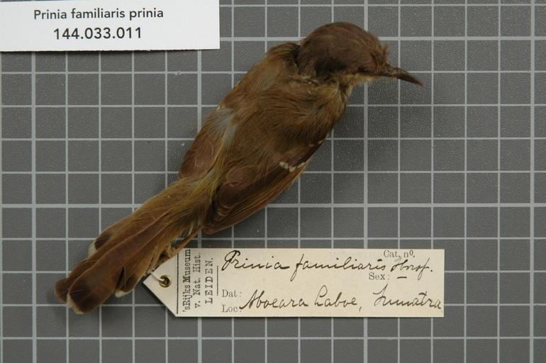 Keywords: Naturalis Biodiversity Center - RMNH.AVES.137363 1 - Prinia familiaris prinia (Temminck, 1822) - Sylviidae - bird skin specimen.jpeg artwork Dimensions artwork Document type Sylviidae Prinia Individual count 1 Infraspecific epithet prinia Infraspecific rank Institution Naturalis Kind of unit artwork Kind of unit specimen skin Life stage Indonesia Sumatra Moeara Laboe Medium artwork Nomenclatural code Sex remark on label - Occurrence ID page Other fields Other versions artwork Permission license Naturalis donation CC-0 Publication location Scientific name Prinia familiaris prinia Temminck 1822 Scientific name authorship Temminck 1822 Source url http //bioportal naturalis nl Specific epithet familiaris State or province Subject keywords artwork Subject keywords publication Title artwork Title publication Type status Uploaded with GWToolset Naturalis_Biodiversity_Center_-_RMNH AVES 137363_1_-_Prinia_familiaris_prinia_ Temminck _1822 _-_Sylviidae_-_bird_skin_specimen http //medialib naturalis nl/file/id/RMNH AVES 137363_1/format/large Media donated by Naturalis Biodiversity Center Songbird specimens at Naturalis Biodiversity Center Prinia familiaris Prinia |