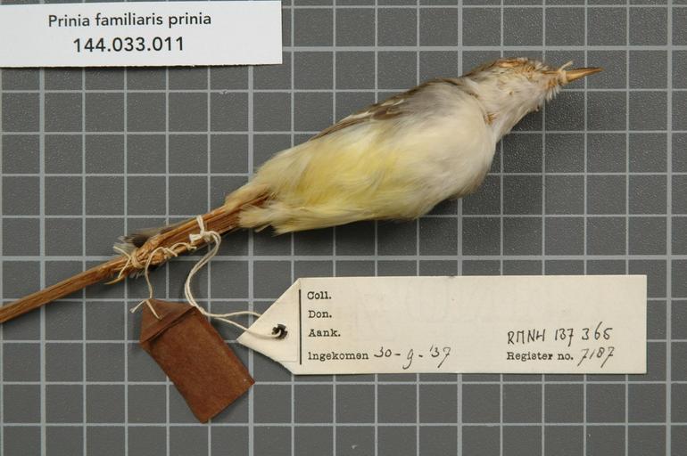Keywords: Naturalis Biodiversity Center - RMNH.AVES.137365 2 - Prinia familiaris prinia (Temminck, 1822) - Sylviidae - bird skin specimen.jpeg artwork Dimensions artwork Document type Sylviidae Prinia Individual count 1 Infraspecific epithet prinia Infraspecific rank Institution Naturalis Kind of unit artwork Kind of unit specimen skin Life stage Tjiplokan dessa soemberdja Medium artwork Nomenclatural code Occurrence ID page Other fields Other versions artwork Permission license Naturalis donation CC-0 Publication location Scientific name Prinia familiaris prinia Temminck 1822 Scientific name authorship Temminck 1822 male Source url http //bioportal naturalis nl Specific epithet familiaris State or province Subject keywords artwork Subject keywords publication Title artwork Title publication Type status Uploaded with GWToolset Naturalis_Biodiversity_Center_-_RMNH AVES 137365_2_-_Prinia_familiaris_prinia_ Temminck _1822 _-_Sylviidae_-_bird_skin_specimen http //medialib naturalis nl/file/id/RMNH AVES 137365_2/format/large Media donated by Naturalis Biodiversity Center Songbird specimens at Naturalis Biodiversity Center Prinia familiaris Prinia
