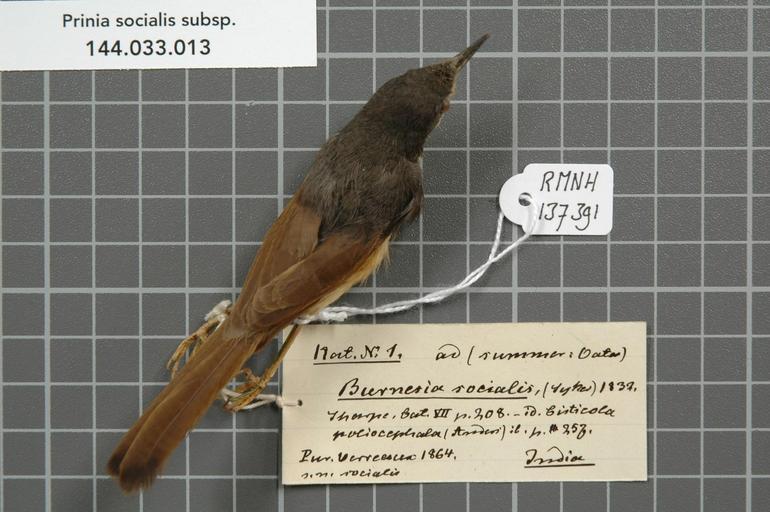 Keywords: Naturalis Biodiversity Center - RMNH.AVES.137391 1 - Prinia socialis subsp. - Sylviidae - bird skin specimen.jpeg artwork Dimensions artwork Document type Sylviidae Prinia Individual count 1 Infraspecific epithet subsp Infraspecific rank Institution Naturalis Kind of unit artwork Kind of unit specimen skin Life stage adult India Medium artwork Nomenclatural code Age remark on label ad summer Oates Occurrence ID page Other fields Other versions artwork Permission license Naturalis donation CC-0 Publication location Scientific name Prinia socialis subsp Scientific name authorship Source url http //bioportal naturalis nl Specific epithet socialis State or province Subject keywords artwork Subject keywords publication Title artwork Title publication Type status Uploaded with GWToolset Naturalis_Biodiversity_Center_-_RMNH AVES 137391_1_-_Prinia_socialis_subsp _-_Sylviidae_-_bird_skin_specimen http //medialib naturalis nl/file/id/RMNH AVES 137391_1/format/large Media donated by Naturalis Biodiversity Center Songbird specimens at Naturalis Biodiversity Center Prinia socialis Prinia |