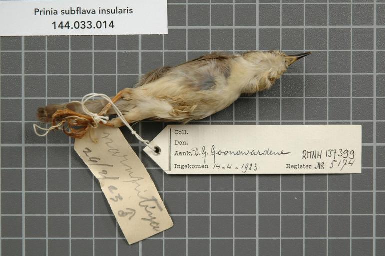 Keywords: Naturalis Biodiversity Center - RMNH.AVES.137399 2 - Prinia subflava insularis (Legge, 1879) - Sylviidae - bird skin specimen.jpeg artwork Dimensions artwork Document type Sylviidae Prinia Individual count 1 Infraspecific epithet insularis Infraspecific rank Institution Naturalis Kind of unit artwork Kind of unit specimen skin Life stage Ceylon Narupitiya Medium artwork Nomenclatural code Occurrence ID page Other fields Other versions artwork Permission license Naturalis donation CC-0 Publication location Scientific name Prinia subflava insularis Legge 1879 Scientific name authorship Legge 1879 male Source url http //bioportal naturalis nl Specific epithet subflava State or province Subject keywords artwork Subject keywords publication Title artwork Title publication Type status Uploaded with GWToolset Naturalis_Biodiversity_Center_-_RMNH AVES 137399_2_-_Prinia_subflava_insularis_ Legge _1879 _-_Sylviidae_-_bird_skin_specimen http //medialib naturalis nl/file/id/RMNH AVES 137399_2/format/large Media donated by Naturalis Biodiversity Center Songbird specimens at Naturalis Biodiversity Center Prinia subflava Prinia