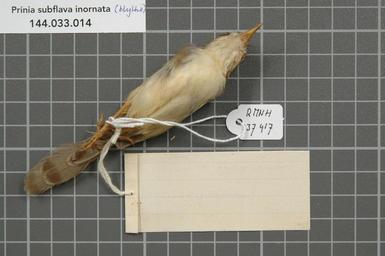 View Original:Naturalis Biodiversity Center - RMNH.AVES.137417 2 - Prinia subflava inornata Sykes, 1832 - Sylviidae - bird skin specimen.jpeg (1920x1277)