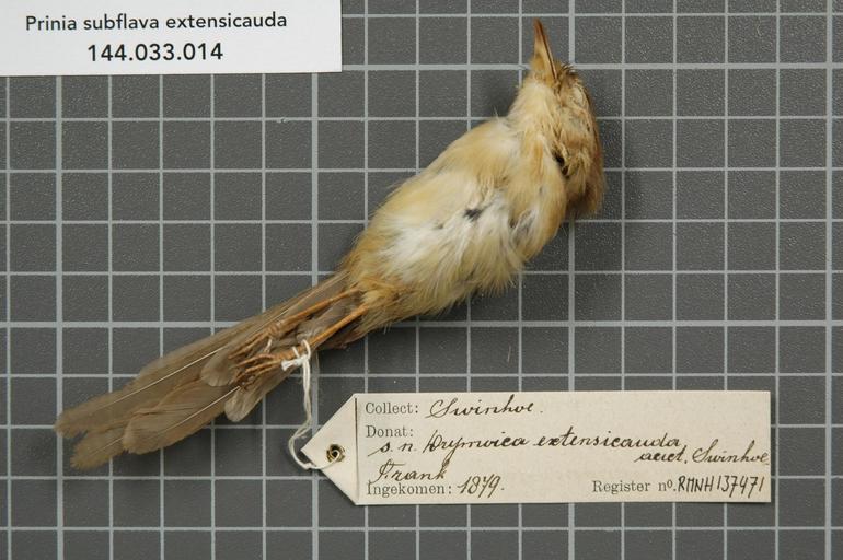Keywords: Naturalis Biodiversity Center - RMNH.AVES.137471 2 - Prinia subflava extensicauda (Swinhoe, 1860) - Sylviidae - bird skin specimen.jpeg artwork Dimensions artwork Document type Sylviidae Prinia Individual count 1 Infraspecific epithet extensicauda Infraspecific rank Institution Naturalis Kind of unit artwork Kind of unit specimen skin Life stage Formosa Medium artwork Nomenclatural code Additional identification info auct Swinhoe Occurrence ID page Other fields Other versions artwork Permission license Naturalis donation CC-0 Publication location Scientific name Prinia subflava extensicauda Swinhoe 1860 Scientific name authorship Swinhoe 1860 Source url http //bioportal naturalis nl Specific epithet subflava State or province Subject keywords artwork Subject keywords publication Title artwork Title publication Type status Uploaded with GWToolset Naturalis_Biodiversity_Center_-_RMNH AVES 137471_2_-_Prinia_subflava_extensicauda_ Swinhoe _1860 _-_Sylviidae_-_bird_skin_specimen http //medialib naturalis nl/file/id/RMNH AVES 137471_2/format/large Media donated by Naturalis Biodiversity Center Songbird specimens at Naturalis Biodiversity Center Prinia subflava Prinia |