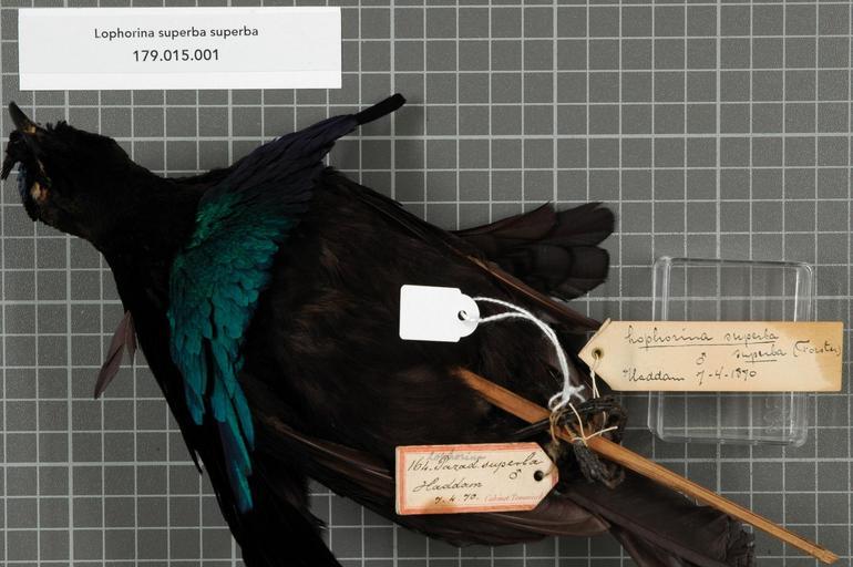 | Keywords: Naturalis Biodiversity Center - RMNH.AVES.140804 1 - Lophorina superba superba (Pennant, 1781) - Paradisaeidae - bird skin specimen.jpeg artwork Dimensions artwork Document type Paradisaeidae Lophorina Individual count 1 Infraspecific epithet superba Infraspecific rank Institution Naturalis Kind of unit artwork Kind of unit specimen skin Life stage Haddam Medium artwork Nomenclatural code Occurrence ID page Other fields Other versions artwork Permission license Naturalis donation CC-0 Publication location Scientific name Lophorina superba superba Pennant 1781 Scientific name authorship Pennant 1781 male Source url http //bioportal naturalis nl Specific epithet superba State or province Subject keywords artwork Subject keywords publication Title artwork Title publication Type status Uploaded with GWToolset Naturalis_Biodiversity_Center_-_RMNH AVES 140804_1_-_Lophorina_superba_superba_ Pennant _1781 _-_Paradisaeidae_-_bird_skin_specimen http //medialib naturalis nl/file/id/RMNH AVES 140804_1/format/large Media donated by Naturalis Biodiversity Center Songbird specimens at Naturalis Biodiversity Center Lophorina superba Lophorina |