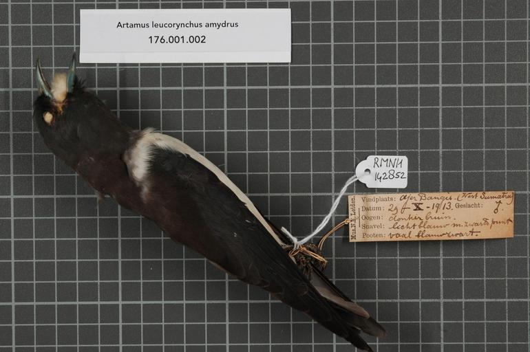 | Keywords: Naturalis Biodiversity Center - RMNH.AVES.142852 1 - Artamus leucorhynchus amydrus Oberholser, 1917 - Artamidae - bird skin specimen.jpeg artwork Dimensions artwork Document type Artamidae Artamus Individual count 1 Infraspecific epithet amydrus Infraspecific rank Institution Naturalis Kind of unit artwork Kind of unit specimen skin Life stage Indonesia West Sumatra Ajer Bangis Medium artwork Nomenclatural code Occurrence ID page Other fields Other versions artwork Permission license Naturalis donation CC-0 Publication location Scientific name Artamus leucorhynchus amydrus Oberholser 1917 Scientific name authorship Oberholser 1917 male Source url Specific epithet leucorhynchus State or province West Sumatra Subject keywords artwork Subject keywords publication Title artwork Title publication Type status Uploaded with GWToolset Naturalis_Biodiversity_Center_-_RMNH AVES 142852_1_-_Artamus_leucorhynchus_amydrus_Oberholser _1917_-_Artamidae_-_bird_skin_specimen http //medialib naturalis nl/file/id/RMNH AVES 142852_1/format/large Media donated by Naturalis Biodiversity Center Songbird specimens at Naturalis Biodiversity Center Artamus leucorynchus amydrus Artamus |