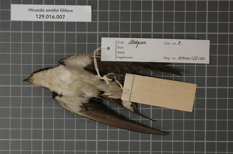 Keywords: Naturalis Biodiversity Center - RMNH.AVES.125100 2 - Hirundo smithii filifera Stephens, 1825 - Hirundinidae - bird skin specimen.jpeg artwork Dimensions artwork Document type Hirundinidae Hirundo Individual count 1 Infraspecific epithet filifera Infraspecific rank Institution Naturalis Kind of unit artwork Kind of unit specimen skin Life stage India Behar Medium artwork Nomenclatural code Sex remark female Occurrence ID page Other fields Other versions artwork Permission license Naturalis donation CC-0 Publication location Scientific name Hirundo smithii filifera Stephens 1825 Scientific name authorship Stephens 1825 female Source url http //bioportal naturalis nl Specific epithet smithii State or province Subject keywords artwork Subject keywords publication Title artwork Title publication Type status Uploaded with GWToolset Naturalis_Biodiversity_Center_-_RMNH AVES 125100_2_-_Hirundo_smithii_filifera_Stephens _1825_-_Hirundinidae_-_bird_skin_specimen http //medialib naturalis nl/file/id/RMNH AVES 125100_2/format/large Media donated by Naturalis Biodiversity Center Songbird specimens at Naturalis Biodiversity Center Hirundo smithii museum specimens