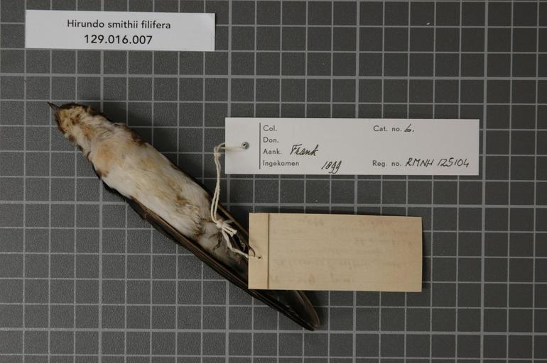 | Keywords: Naturalis Biodiversity Center - RMNH.AVES.125104 2 - Hirundo smithii filifera Stephens, 1825 - Hirundinidae - bird skin specimen.jpeg artwork Dimensions artwork Document type Hirundinidae Hirundo Individual count 1 Infraspecific epithet filifera Infraspecific rank Institution Naturalis Kind of unit artwork Kind of unit specimen skin Life stage juvenile India Nilghiris Coonoor Medium artwork Nomenclatural code Occurrence ID page Other fields Other versions artwork Permission license Naturalis donation CC-0 Publication location Scientific name Hirundo smithii filifera Stephens 1825 Scientific name authorship Stephens 1825 Source url http //bioportal naturalis nl Specific epithet smithii State or province Nilghiris Subject keywords artwork Subject keywords publication Title artwork Title publication Type status Uploaded with GWToolset Naturalis_Biodiversity_Center_-_RMNH AVES 125104_2_-_Hirundo_smithii_filifera_Stephens _1825_-_Hirundinidae_-_bird_skin_specimen http //medialib naturalis nl/file/id/RMNH AVES 125104_2/format/large Media donated by Naturalis Biodiversity Center Songbird specimens at Naturalis Biodiversity Center Hirundo smithii museum specimens |