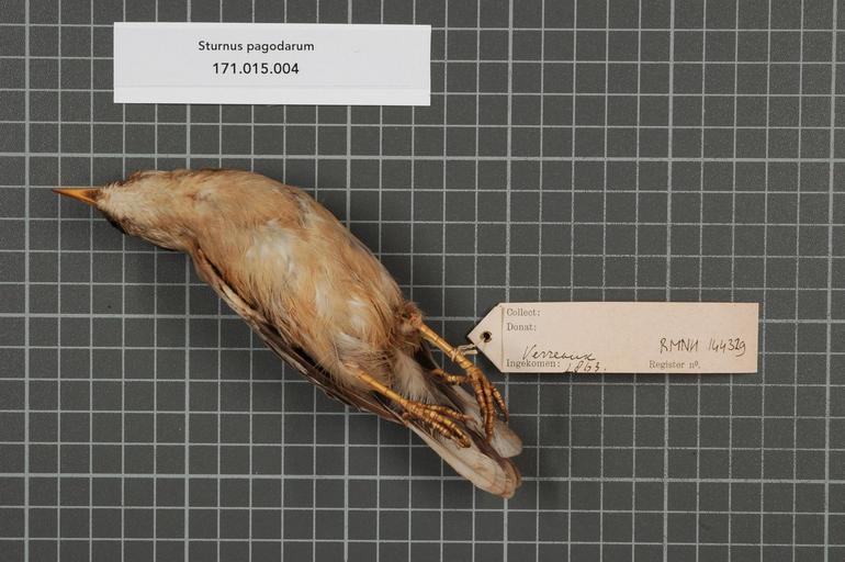 | Keywords: Naturalis Biodiversity Center - RMNH.AVES.144329 2 - Sturnus pagodarum (J.F. Gmelin, 1789) - Sturnidae - bird skin specimen.jpeg artwork Dimensions artwork Document type Sturnidae Sturnus Individual count 1 Infraspecific epithet Infraspecific rank Institution Naturalis Kind of unit artwork Kind of unit specimen skin Life stage juvenile Voor-Indie Medium artwork Nomenclatural code Occurrence ID page Other fields Other versions artwork Permission license Naturalis donation CC-0 Publication location Scientific name Sturnus pagodarum J F Gmelin 1789 Scientific name authorship J F Gmelin 1789 female Source url http //bioportal naturalis nl Specific epithet pagodarum State or province Voor-Indie Subject keywords artwork Subject keywords publication Title artwork Title publication Type status Uploaded with GWToolset Naturalis_Biodiversity_Center_-_RMNH AVES 144329_2_-_Sturnus_pagodarum_ J F _Gmelin _1789 _-_Sturnidae_-_bird_skin_specimen http //medialib naturalis nl/file/id/RMNH AVES 144329_2/format/large Media donated by Naturalis Biodiversity Center Songbird specimens at Naturalis Biodiversity Center Sturnia pagodarum |